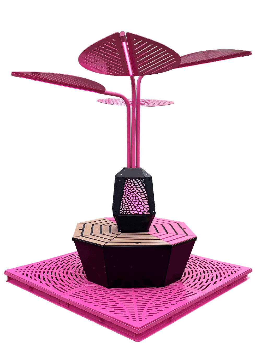 Vhm ÉCLAIRAGE & MOBILIER URBAIN a pour l'occasion mis aux couleurs de l'événement un de ses mobiliers de repos et d'éclairage. Entre le 30 septembre et le 6 octobre, ARBOVIA (design : J.C.Bossio Architecte) notre petit arbre emblématique déploiera son feuillage rose sur la Place de la Liberté (pour laquelle nous avions déjà réalisé des grilles d'arbres et des banquettes).
